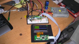 The hardest part of this whole thing was finding an LCD. Fist let me say I don’t like the idea of sticking a laptop under the dash of a car and using a huge OS to run simple stuff. People like to get in their car and just go (this guy included), they don’t want to boot up a computer and wait even 30 seconds, thus the target of my project was something that could be run off a microcontroller. Second, I didn’t want to spend a small fortune on this project. An small, affordable LCD that can be run from a micro sounds simple right? Well not really, I didn’t find many candidates; using standard VGA, 24-bit LCDs takes a lot of resources and was too much of a task to tackle. After a while of searching I found a nice 4.3 inch RGB TFT LCD from New Haven Display. The thing that really locked in the deal for me was New Haven Display sells a development board for this LCD that uses the SDD1963 LCD controller chipset, FPC cable, and FPC to 20-pin header breakout board. I’m not a big fan of soldering leads to tiny connectors, so the idea of using a 20-pin ribbon cable was a big draw. Plus, once you break out into a ribbon cable you can use some standard 0.1 inch header to breadboard the entire thing.