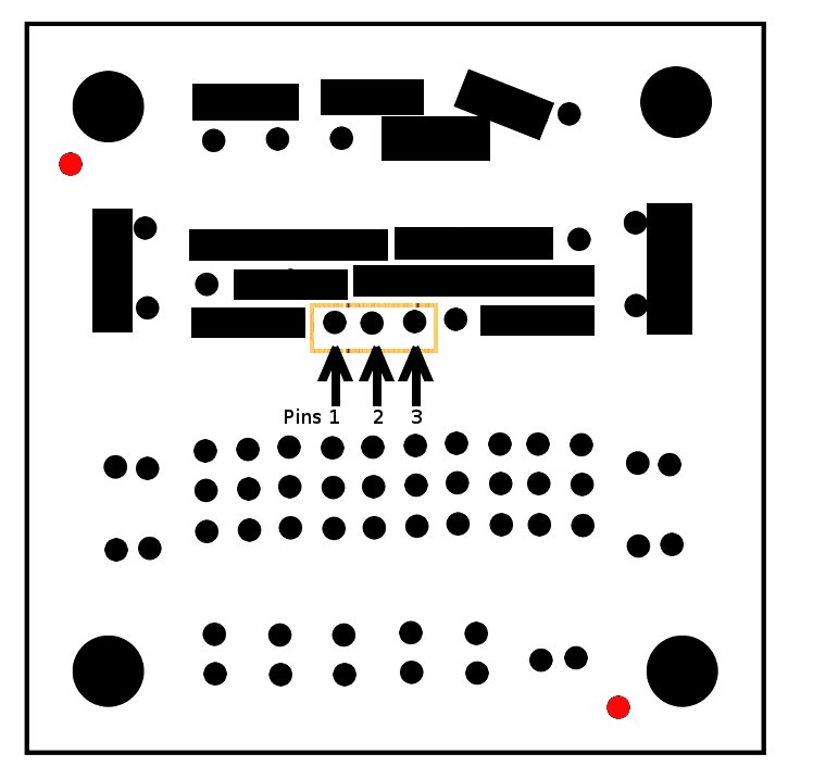 | 3 | Measure and cut a jumper wire to connect the end holes of the spans shown in the image. The wire should cover a total of four (4) holes, jumping over the middle two (2) to connect the two outer holes. If you are using a pre-cut jumper kit the wire is commonly colored orange.Either solder down this wire or continue on to the next step | ![]() |